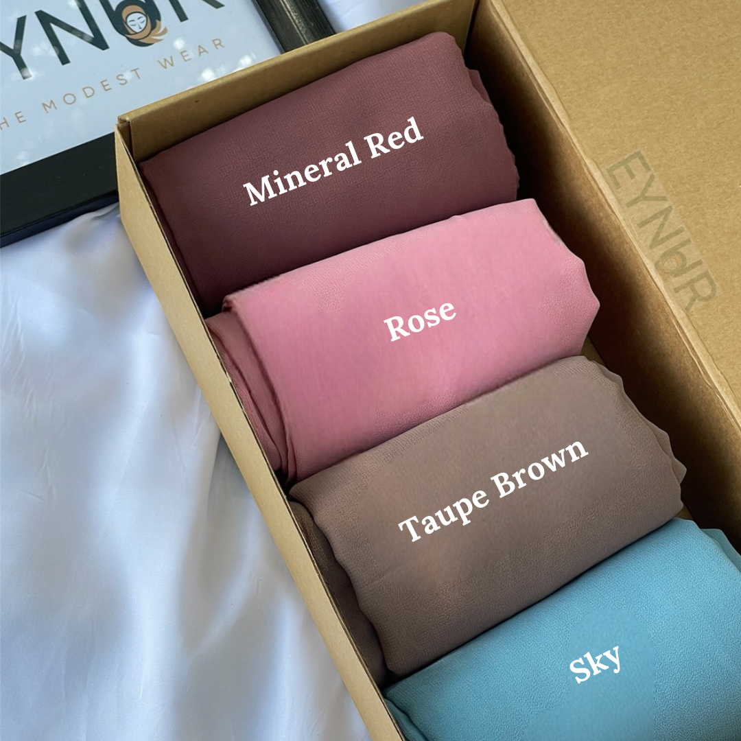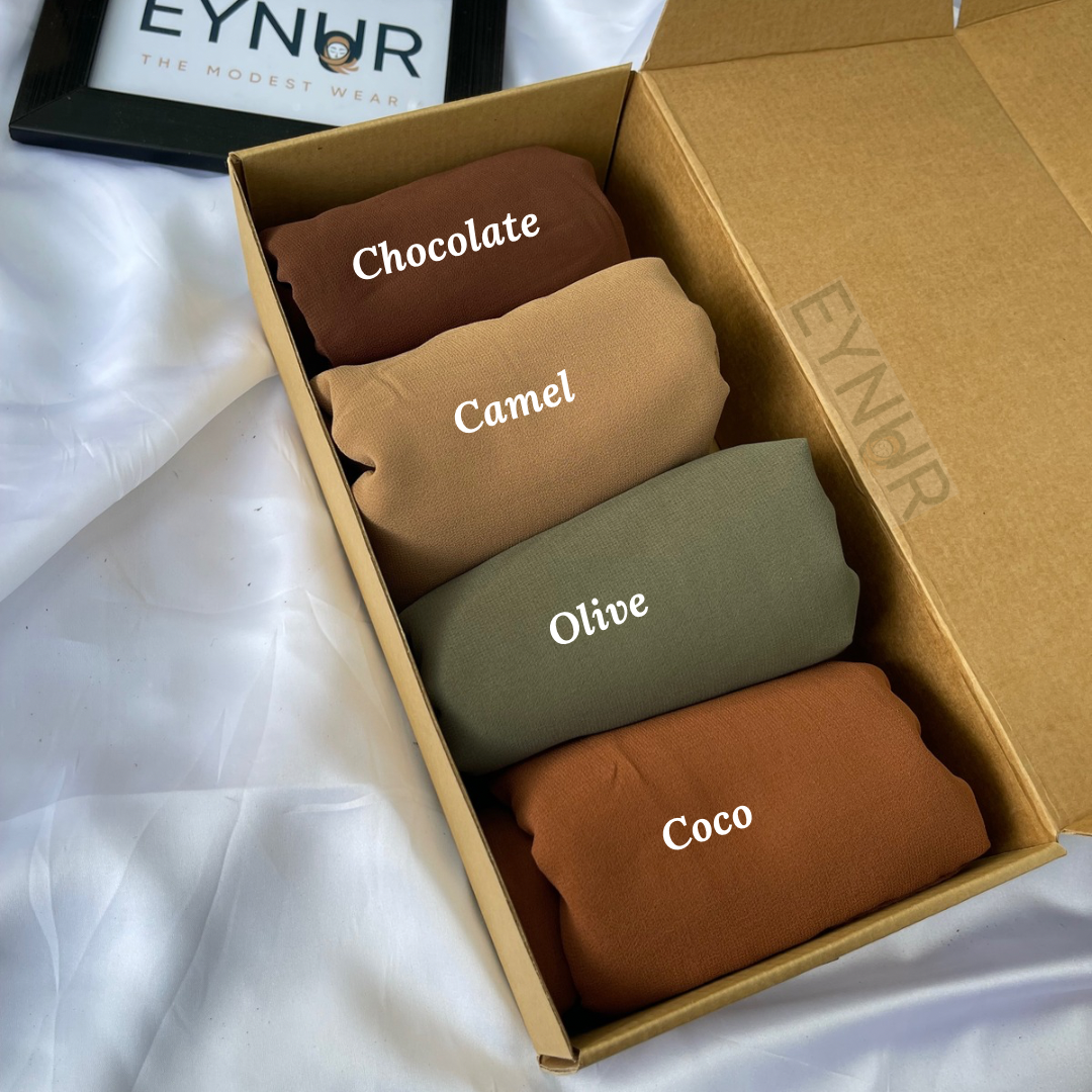 Introducing our Duo Box Deal – a special offer for you and your bestie! Get 4 stunning Georgette hijabs at a stunning price!